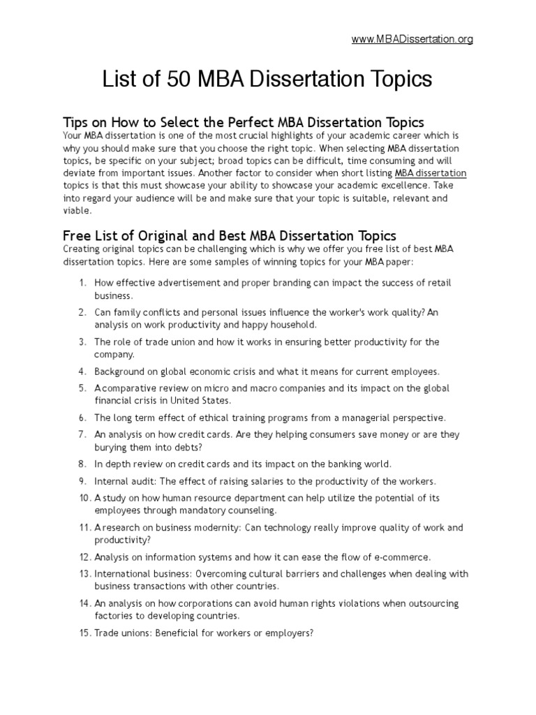 Business Dissertation Topics - over and for FREE